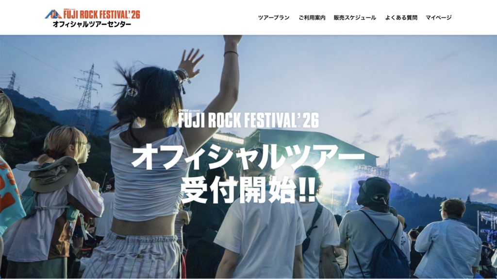 まずはフジロックオフィシャルツアーページのリンクを開いてください。